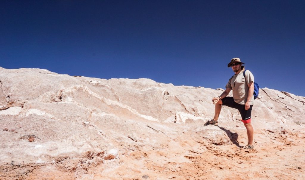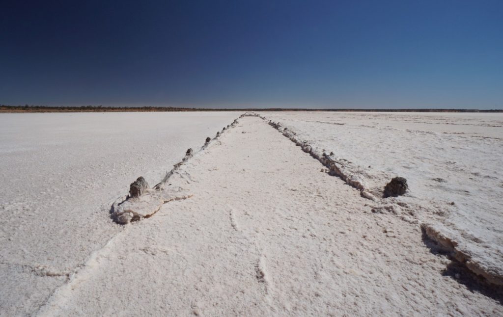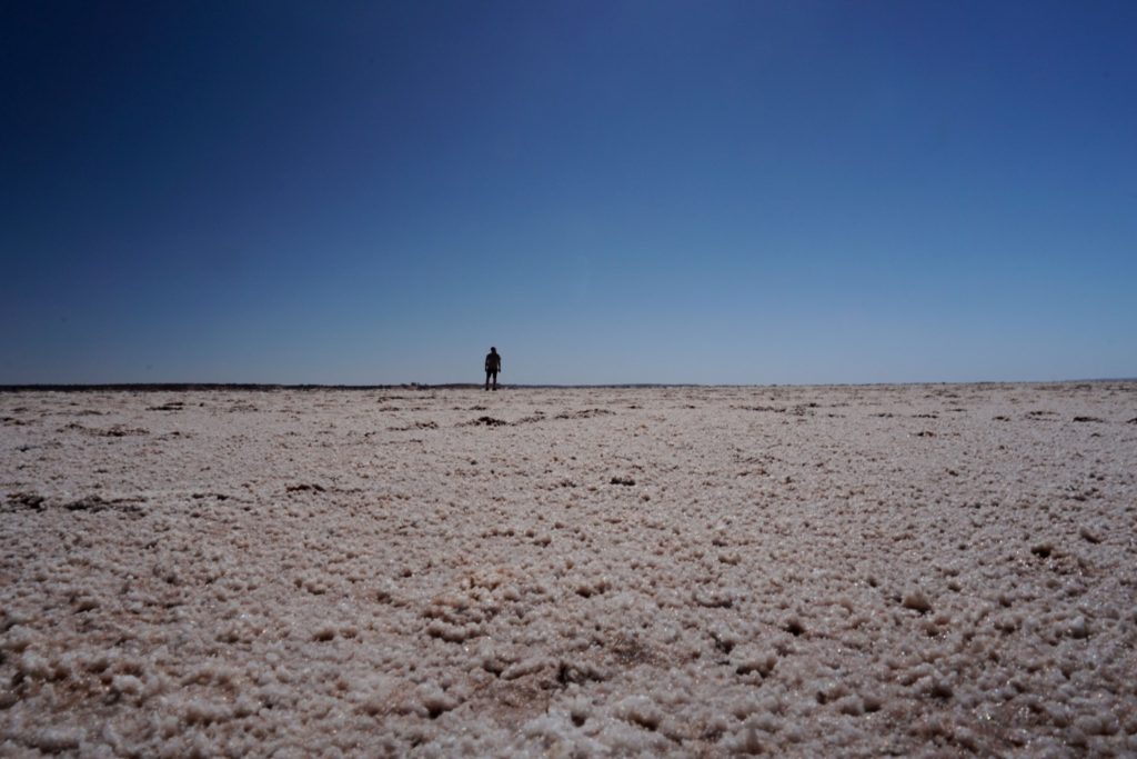 Salzsee, keine Schatten-Bank. Ca. 50 Kilometer ohne Schatten mussten