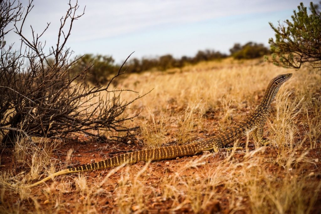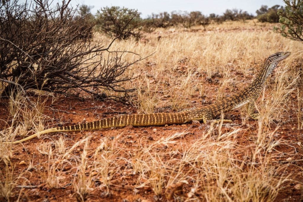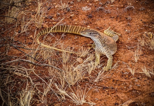 Weit sind wir jedoch nicht gekommen. Die Straße zur Painted Desert ist für Geländefahrzeuge ausgeschrieben. Das geht – in Deutschland – easy mit nem Mountainbike. Aber in Australien sind solche Straßen wellig und echt schwer zu ertragen. Vor allem mit etwas Gepäck und etwas Kater. So drehten wir nach nur 2,5 km und einer enttäuschenden Entdeckungstour mit der Drohne um. Dabei sahen wir die größte Lizard Australiens (und die zweitgrößte der Welt), einen Perentie (Varanus giganteus).